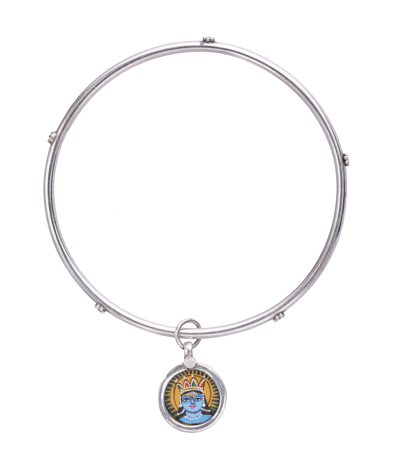 Sterling Silver Bangle with Hand-Painted Indian Miniature.