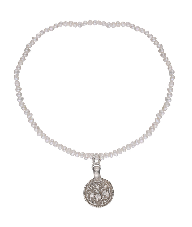 Antique Indian Amulet on Freshwater Seed Pearl Stretch Bracelet.
